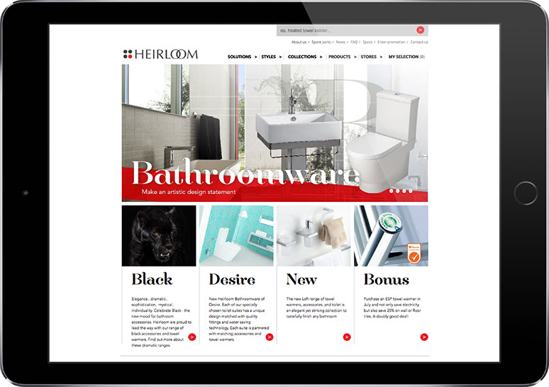 The Heirloom brand story, featured on their website and in catalogues, was also rewritten. Redefined to emphasise their longevity as a Kiwi brand, working alongside NZ architects and trades people, and to draw attention to their knowledge of NZ bathroom environments. After an audit of all product ranges, we devised a product story to allow each range to be distinct from one another but also come together cohesively under the main Heirloom brand.