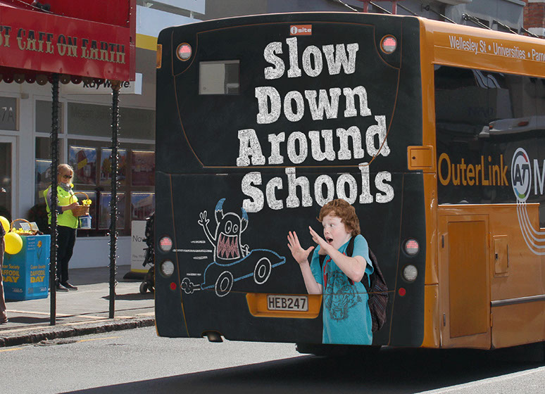 CHALLENGE – Auckland Transport wanted to raise awareness about how vulnerable children are on roads around schools. They wanted to remind drivers of the 40k/h school speed zones and encourage motorists to slow down. Even small increases over the speed limit can make a big difference.