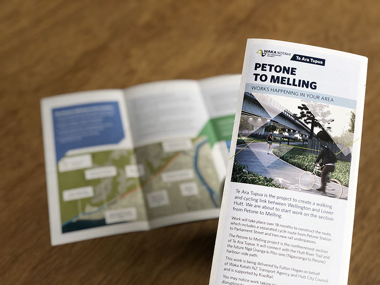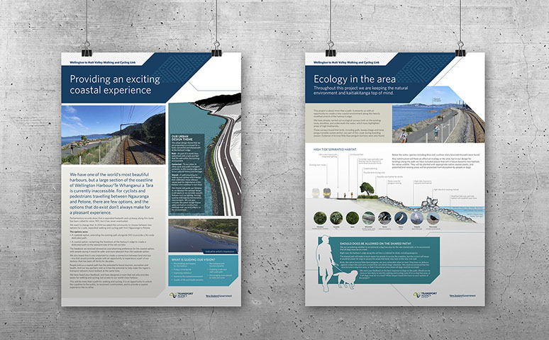 Waka Kotahi Transport Agency frames all of the collateral allowing for the projects visual theme to shine through at community engagement opportunities, internal communications tools and to identify the strong partnership between stakeholders and the community.